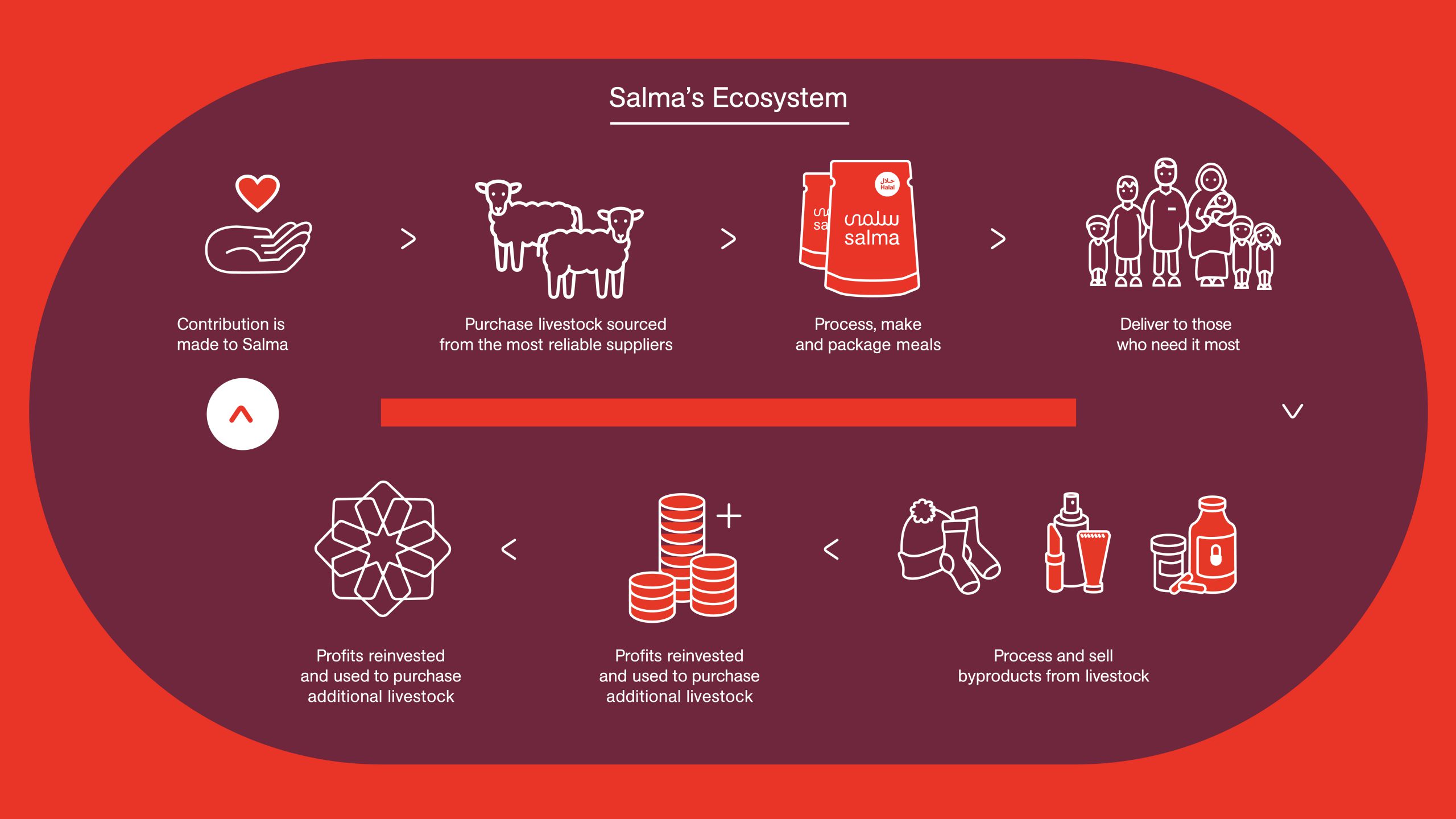 Salma has provided more than 455,000 meals and distributed 50 tons of meat to victims of wars, crises and natural disasters around the world, including 200,000 meals in Palestine, 70,200 in Yemen, 63,000 in Tajikistan, 61,600 meals and 50 tonnes of meat in Jordan, 41,400 meals in West African countries, 12,400 meals in Sudan, and 7,000 meals in the Philippines.